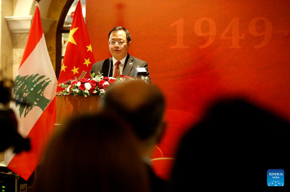 During the celebration, Chinese ambassador to Lebanon Qian Minjian reviewed China's development achievements, saying that China insists on advancing high-standard opening up and will advance the great rejuvenation of the Chinese nation by adopting a Chinese path to modernization.