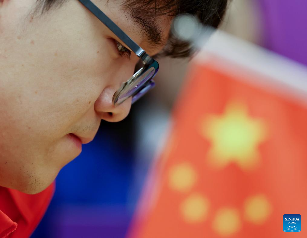 Ke Jie of China competes against Ichiriki Ryo of Japan during the Men's Individual Semifinal of Go Chess at the 19th Asian Games in Hangzhou, east China's Zhejiang Province, Sept. 28, 2023. (Xinhua/Gong Bing)