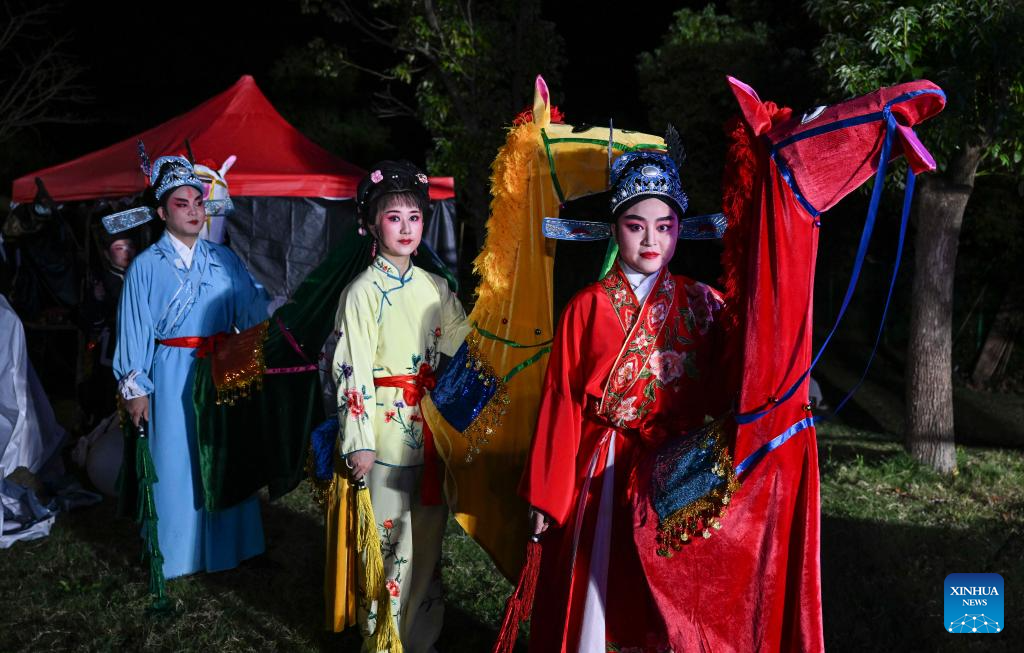 Performers prepare to go on stage during an artistic performance promoting Chinese culture at the Asian Games Sub-village in Chun'an, east China's Zhejiang Province, Sept. 25, 2023. (Xinhua/Hu Huhu)