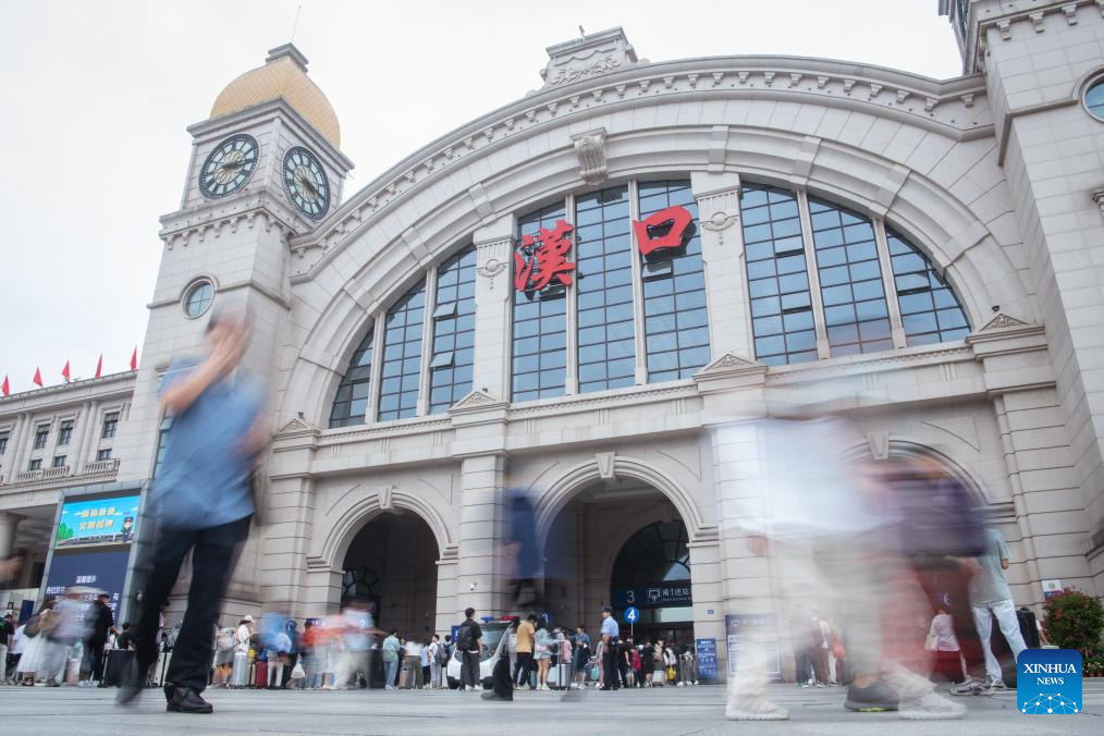 Passengers wait to enter the Hankou Railway Station in Wuhan, central China's Hubei Province, Sept. 28, 2023. The Mid-Autumn Festival and National Day holiday period, which will last from Sept. 29 to Oct. 6 this year, is a peak travel and tourism season in China. (Xinhua/Wu Zhizun)