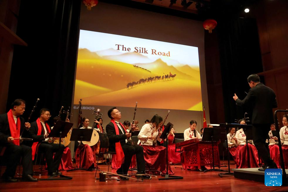 Musicians perform during a Mid-Autumn Festival themed event at the China Cultural Center in Tel Aviv, Israel, Sept. 27, 2023. Various celebrations are held across the world with the approaching of Mid-Autumn Festival. (Xinhua/Chen Junqing)