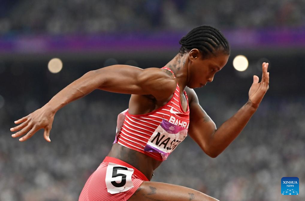 Salwa Eid Naser Naser of Bahrain competes during the Women's 400m Final of Athletics at the 19th Asian Games in Hangzhou, east China's Zhejiang Province, Sept. 30, 2023. (Xinhua/Jiang Wenyao)