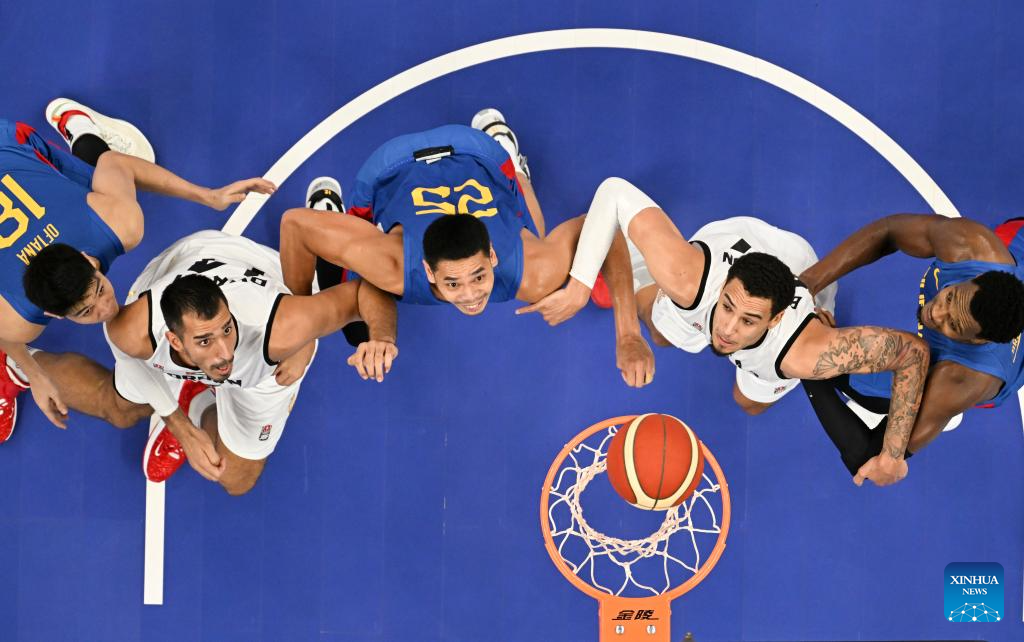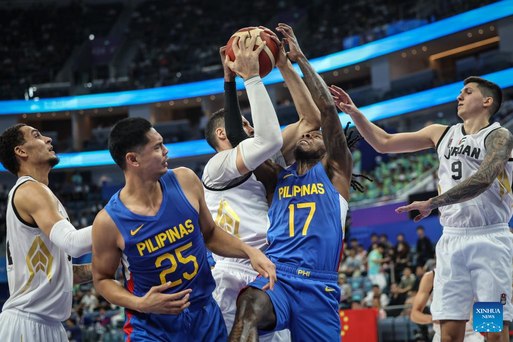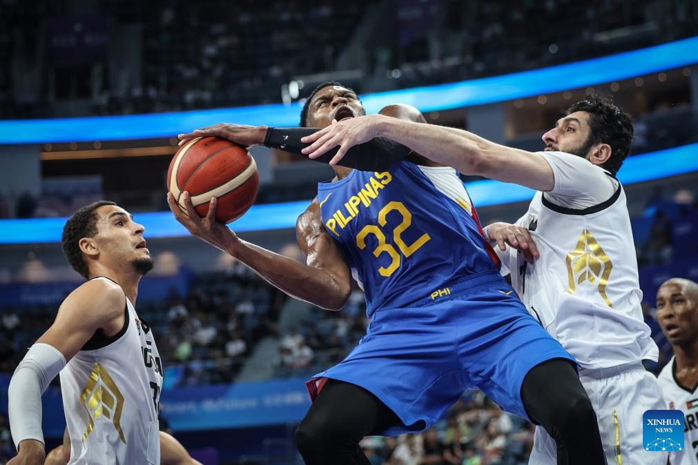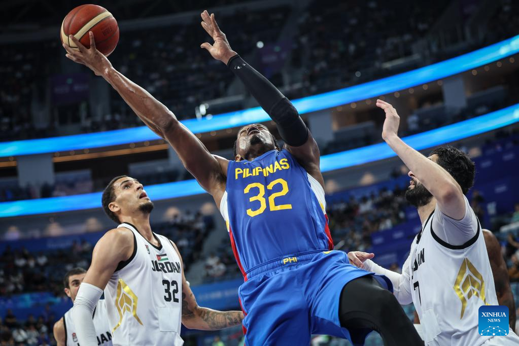 Athletes compete during the Men's Preliminary Round Group match of Basketball between Jordan and Philippines at the 19th Asian Games in Hangzhou, east China's Zhejiang Province, Sept. 30, 2023. (Xinhua/Pan Yulong)