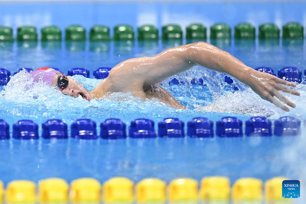 Pan Zhanle of China competes during the Men's 400m Freestyle Final of Swimming at the 19th Asian Games in Hangzhou, east China's Zhejiang Province, Sept. 29, 2023. (Xinhua/Huang Zongzhi)
