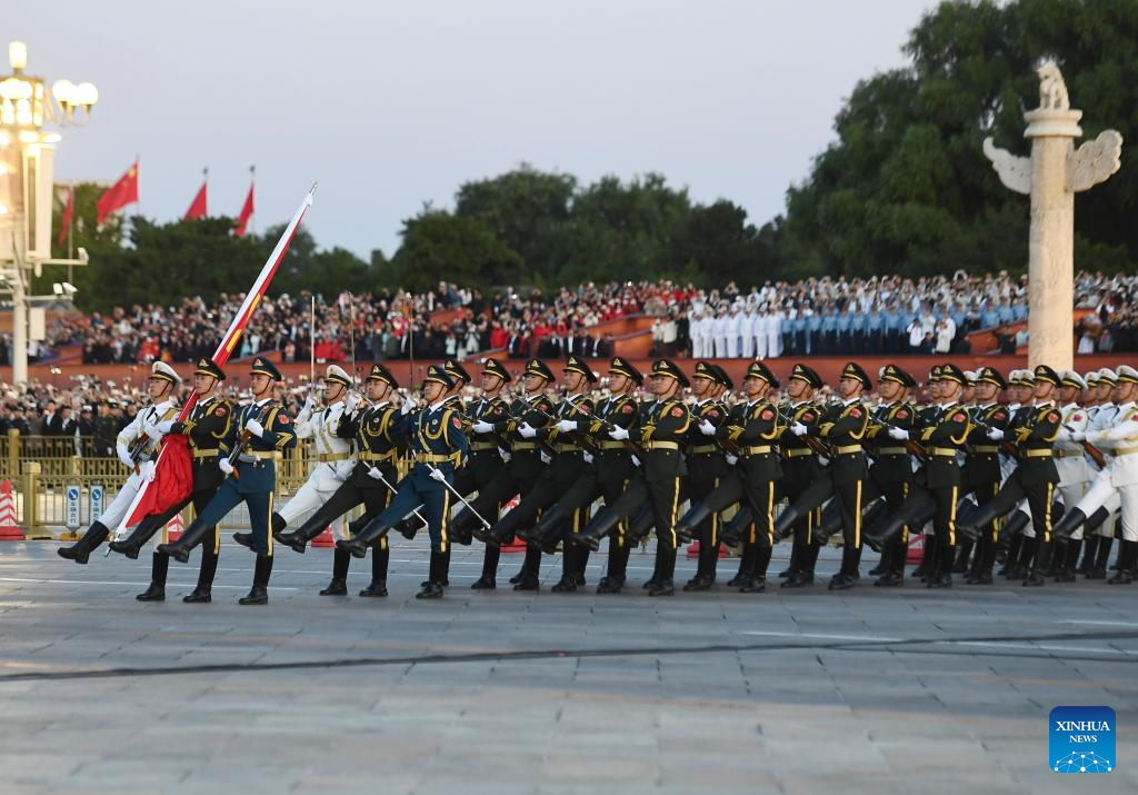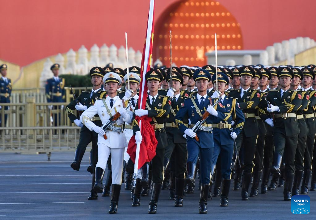 A flag-raising ceremony to celebrate the 74th anniversary of the founding of the People's Republic of China is held at the Tian'anmen Square in Beijing, capital of China, Oct. 1, 2023. (Xinhua/Zhang Chenlin)