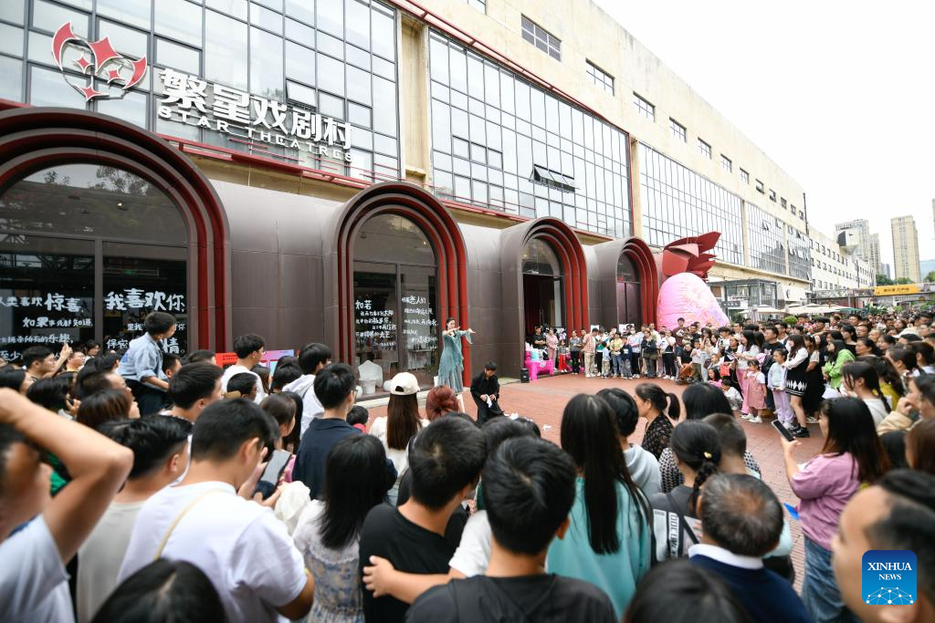 A performance is staged at the Star Theatres in Chengdu, southwest China's Sichuan Province, Oct. 2, 2023. People across the country participate in cultural activities to enrich their holiday life during the National Day holiday. (Xinhua/Xu Bingjie)