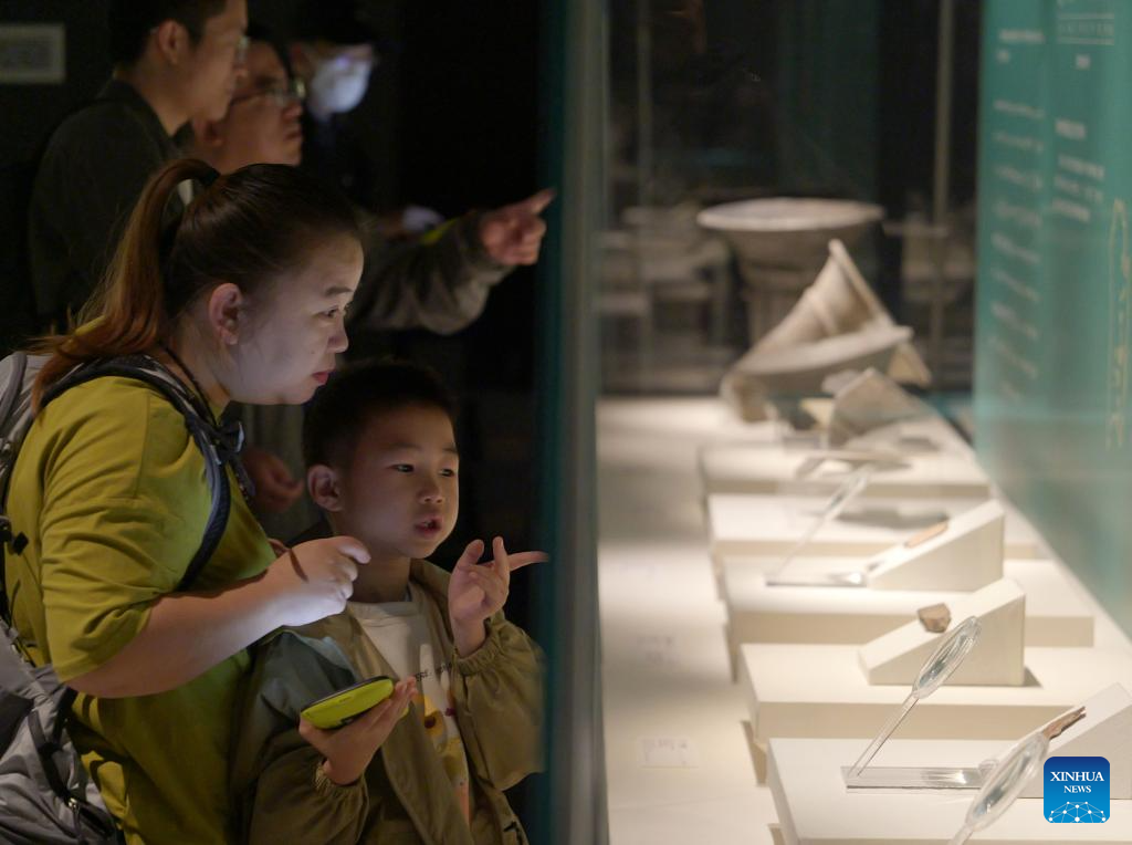 People visit the Zhengzhou Shang Dynasty Ruins Museum in Zhengzhou, central China's Henan Province Oct. 2, 2023. People across the country participate in cultural activities to enrich their holiday life during the National Day holiday. (Xinhua/Li Jianan)