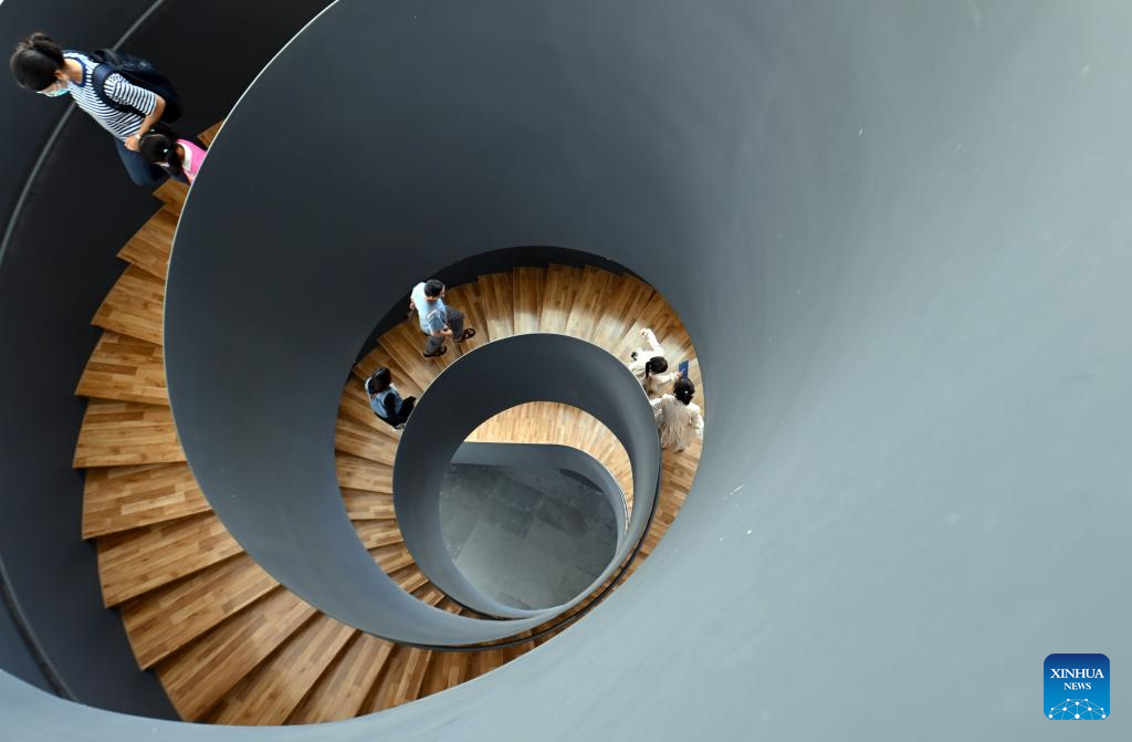 People visit the Anhui Art Museum in Hefei, east China's Anhui Province, Oct. 1, 2023. People across the country participate in cultural activities to enrich their holiday life during the National Day holiday. (Xinhua/Zhou Mu)