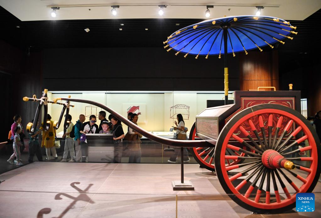 People visit the Hebei Museum in Shijiazhuang, north China's Hebei Province, Oct. 2, 2023. People across the country participate in cultural activities to enrich their holiday life during the National Day holiday. (Xinhua/Mu Yu)