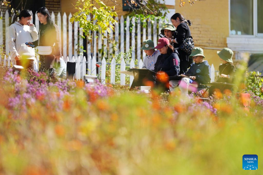 Students paint from life at Hengdaohezi Town in Hailin, northeast China's Heilongjiang Province, Oct. 2, 2023. People across the country participate in cultural activities to enrich their holiday life during the National Day holiday. (Xinhua/Wang Jianwei)