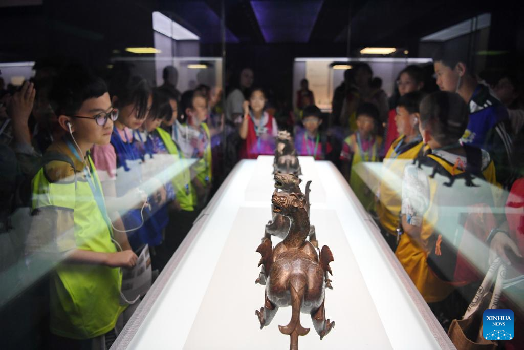 Students visit the Hebei Museum in Shijiazhuang, north China's Hebei Province, Oct. 2, 2023. People across the country participate in cultural activities to enrich their holiday life during the National Day holiday. (Xinhua/Mu Yu)