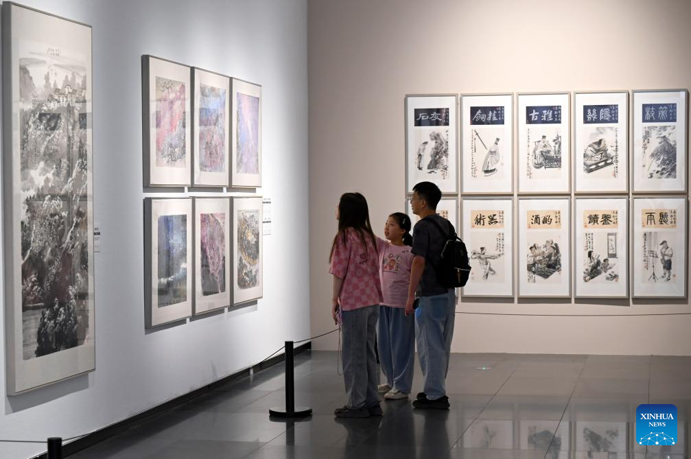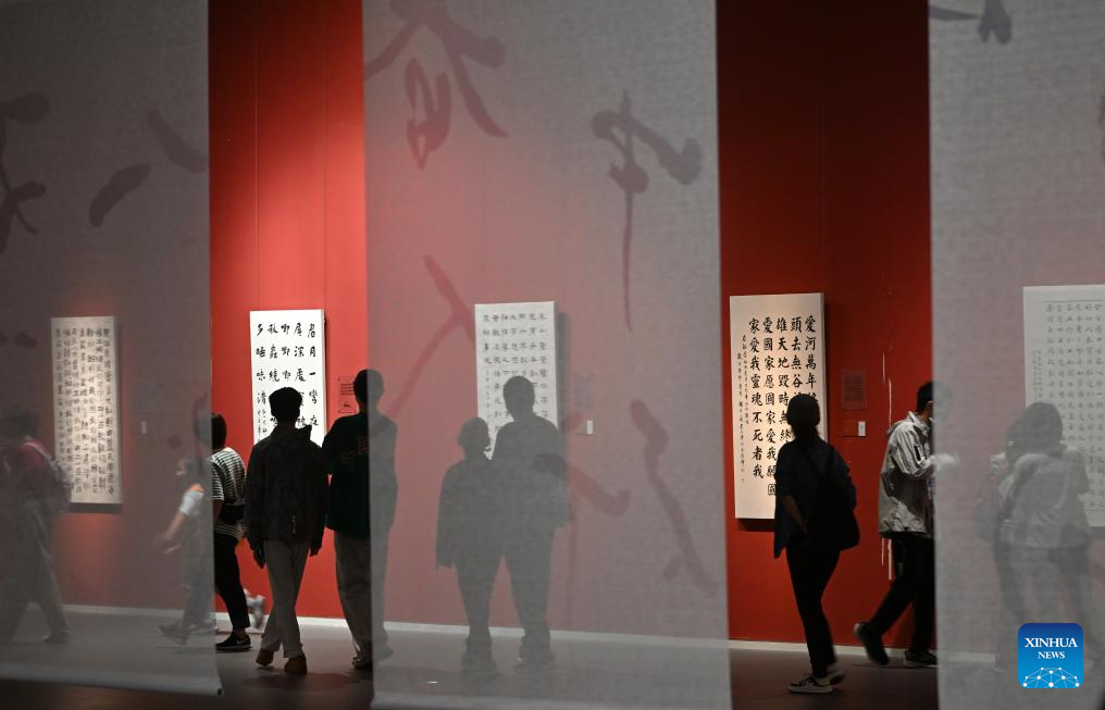 People visit an exhibition at Tianjin Art Museum in Tianjin, north China, Oct. 2, 2023. People across the country participate in cultural activities to enrich their holiday life during the National Day holiday. (Xinhua/Li Ran)