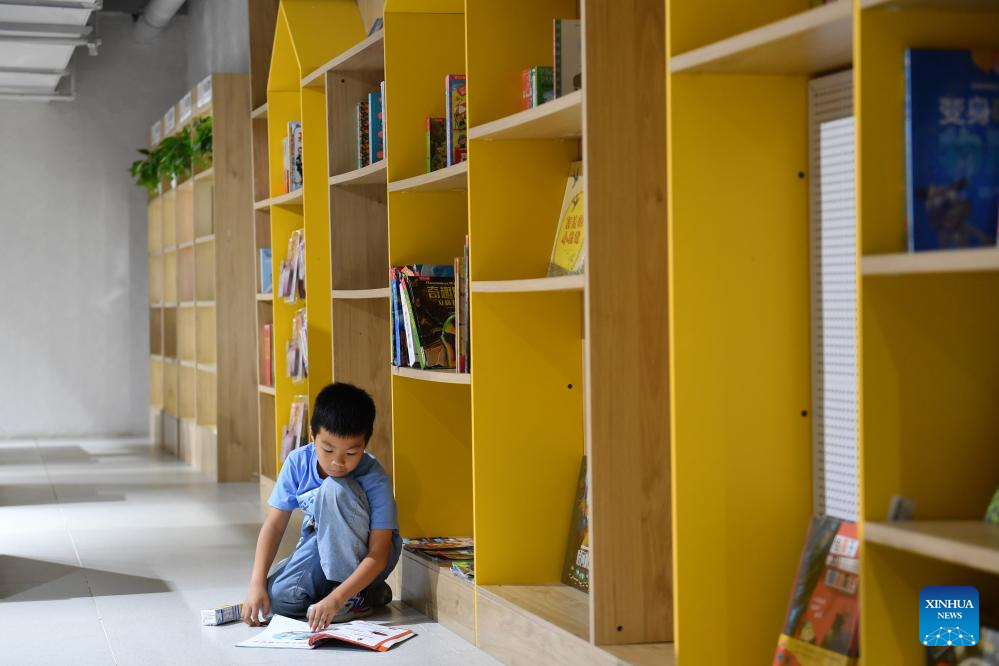 A kid reads at a bookstore in Changsha, central China's Hunan Province, Oct. 2, 2023. People across the country participate in cultural activities to enrich their holiday life during the National Day holiday. (Xinhua/Chen Zhenhai)