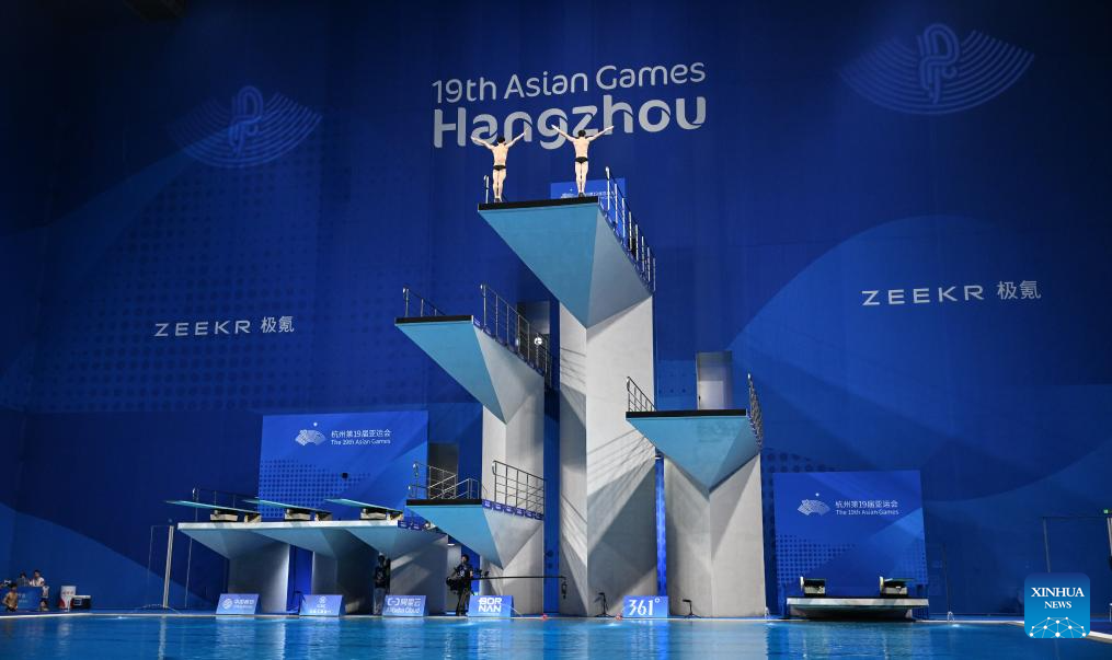 HANGZHOU, Oct. 1 (Xinhua) -- China continued their dominance in the diving competition of the Hangzhou Asian Games, adding two synchro titles on Sunday.