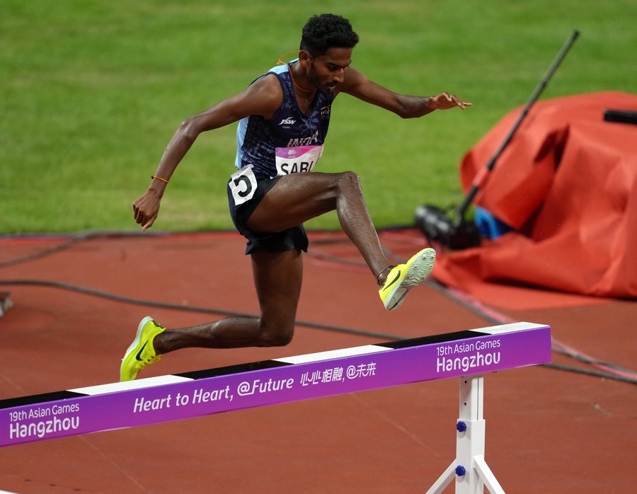 Avinash Mukund Sable of India competes in the men's 3,000m steeplechase final. (Xinhua/Jiang Wenyao)