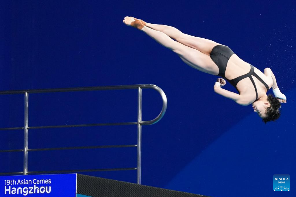 Chen Yuxi of China competes during the Women's 10m Platform Preliminary of Diving at the 19th Asian Games in Hangzhou, east China's Zhejiang Province, Oct. 3, 2023. (Xinhua/Du yu)