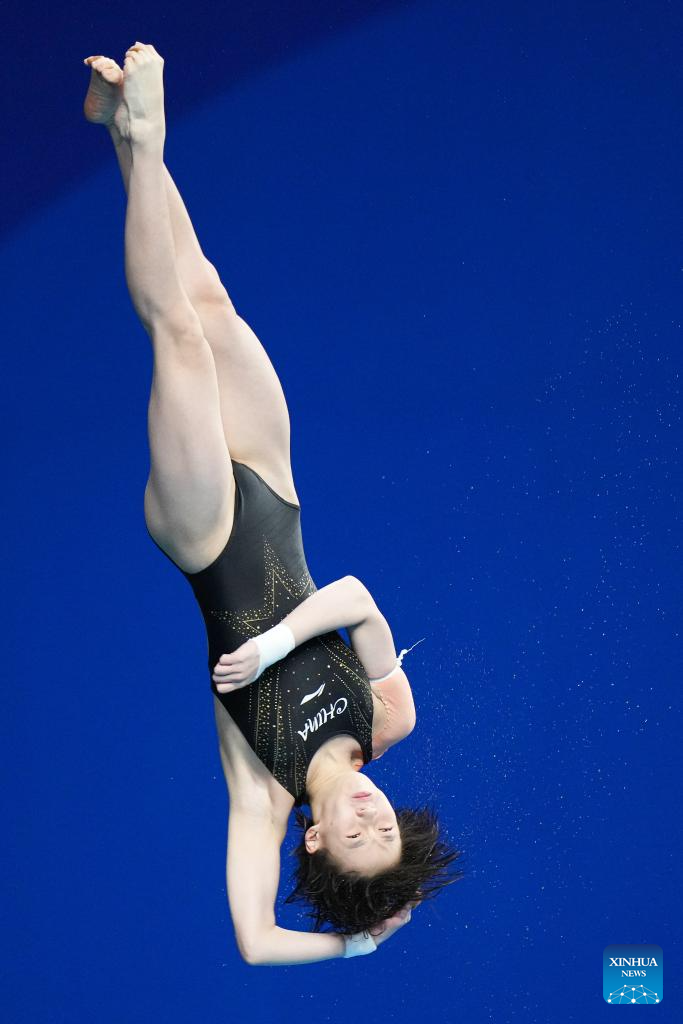 Quan Hongchan of China competes during the Women's 10m Platform Preliminary of Diving at the 19th Asian Games in Hangzhou, east China's Zhejiang Province, Oct. 3, 2023. (Xinhua/Du yu)