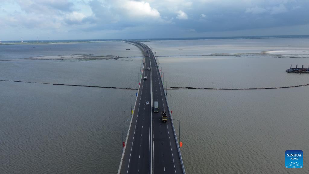 This photo taken on June 25, 2023 shows the Padma Bridge on the outskirts of Dhaka, Bangladesh. The bridge, which was undertaken by China Railway Major Bridge Engineering Group Co, Ltd. and opened to public in June 2022, ending the history of crossing the mighty Padma river between dozens of districts in southern Bangladesh and the capital of Dhaka only by ferries or boats. (Xinhua)