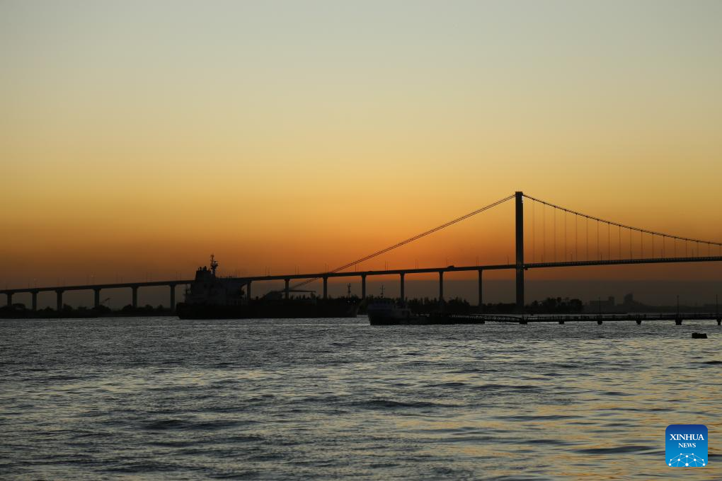 This aerial photo taken on Aug. 30, 2023 shows the Maputo Bay Bridge in Maputo, Mozambique. The bridge is part of the Maputo Bridge and Link Roads project built by the China Road and Bridge Corporation. (Xinhua/Yao Jinhong)