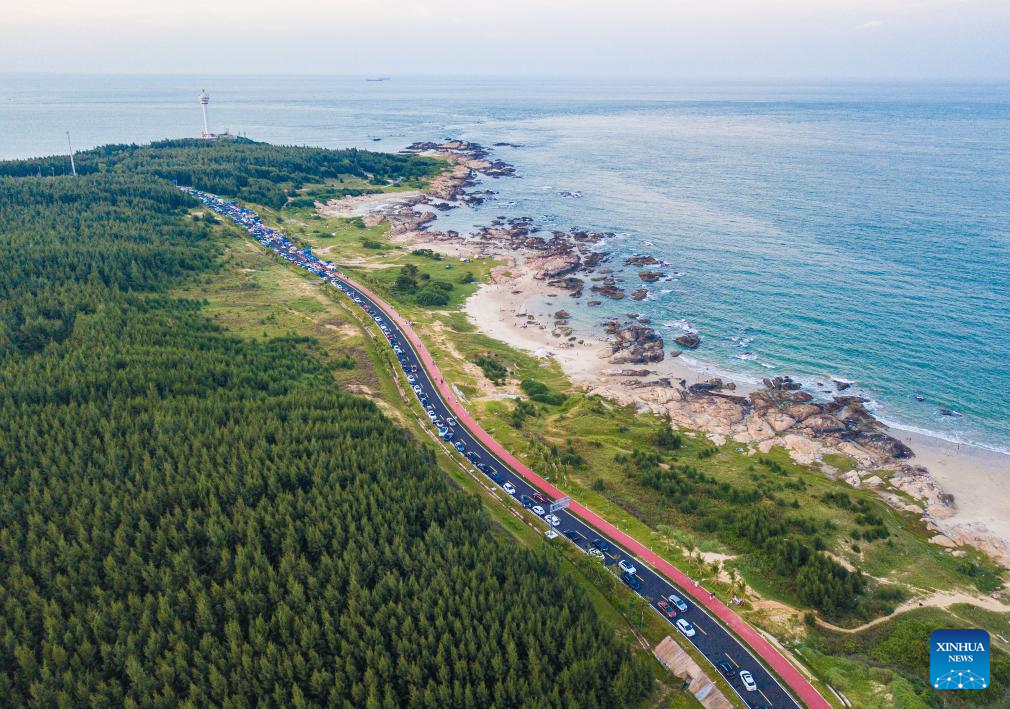 Scenic coastal highway attracts tourists for self-driving tour during holiday in Hainan