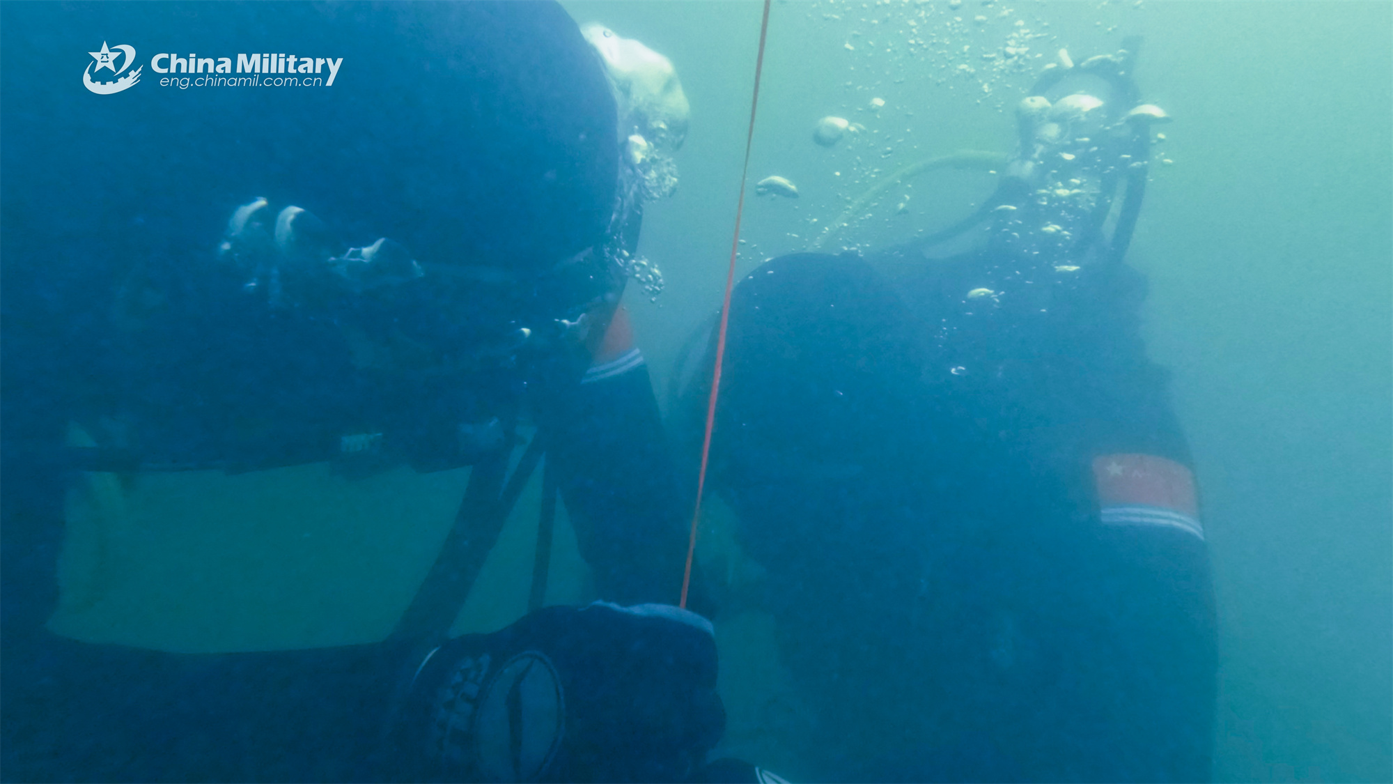 Frogmen assigned to a mine countermeasures (MCM) detachment of the navy under the PLA Eastern Theater Command conduct mine detection and disposal dive during an explosive ordnance disposal and diving training exercise on September 17, 2023. (eng.chinamil.com.cn/Photo by Guo Qun)