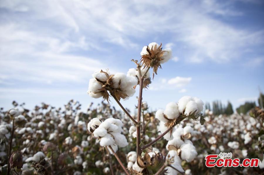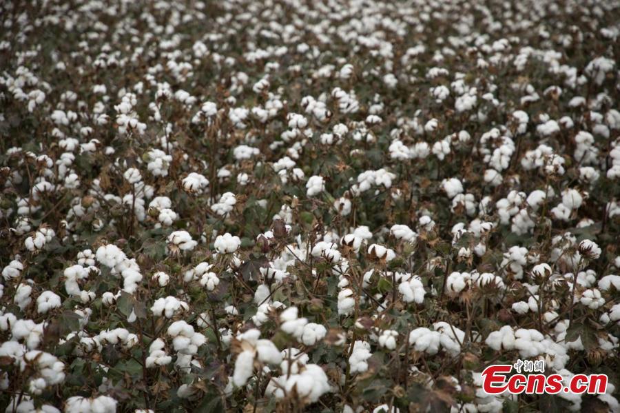 Cotton enters harvest season at a cotton field of Xinjiang Production and Construction Corps, northwest China's Xinjiang Uygur Autonomous Region. (Photo: China News Service/Wang Wanjun)