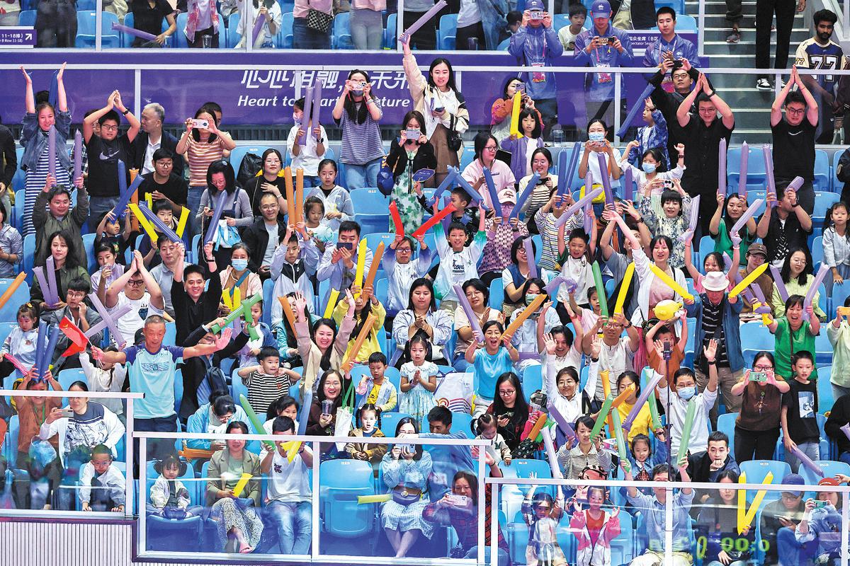 Spectators cheer for the Chinese Taipei team, which beat Iran in the women's kabaddi semifinal, securing a score of 35 to 24 on Friday at the 19th Asian Games in Hangzhou, Zhejiang province. [Photo/Xinhua]