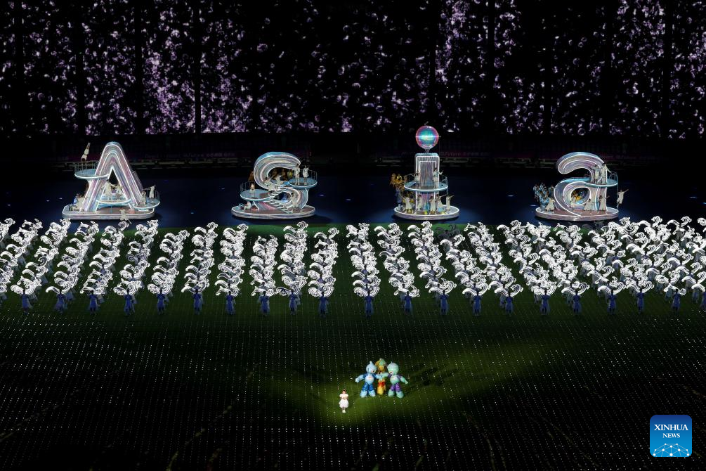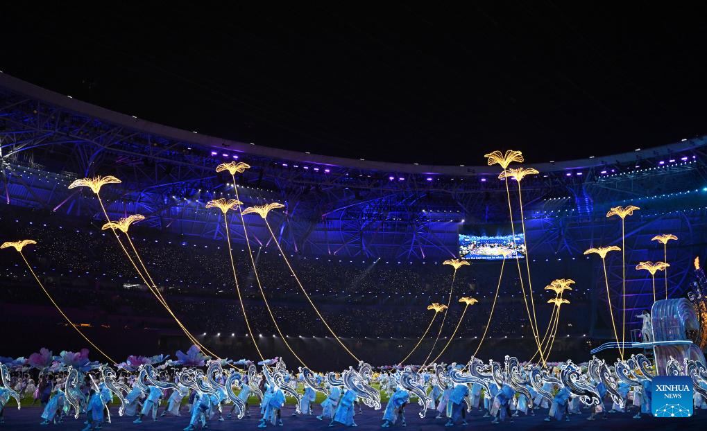 Artists perform during the closing ceremony of the 19th Asian Games at the Hangzhou Olympic Sports Center Stadium in Hangzhou, east China's Zhejiang Province, Oct. 8, 2023. (Xinhua/Yang Lei)