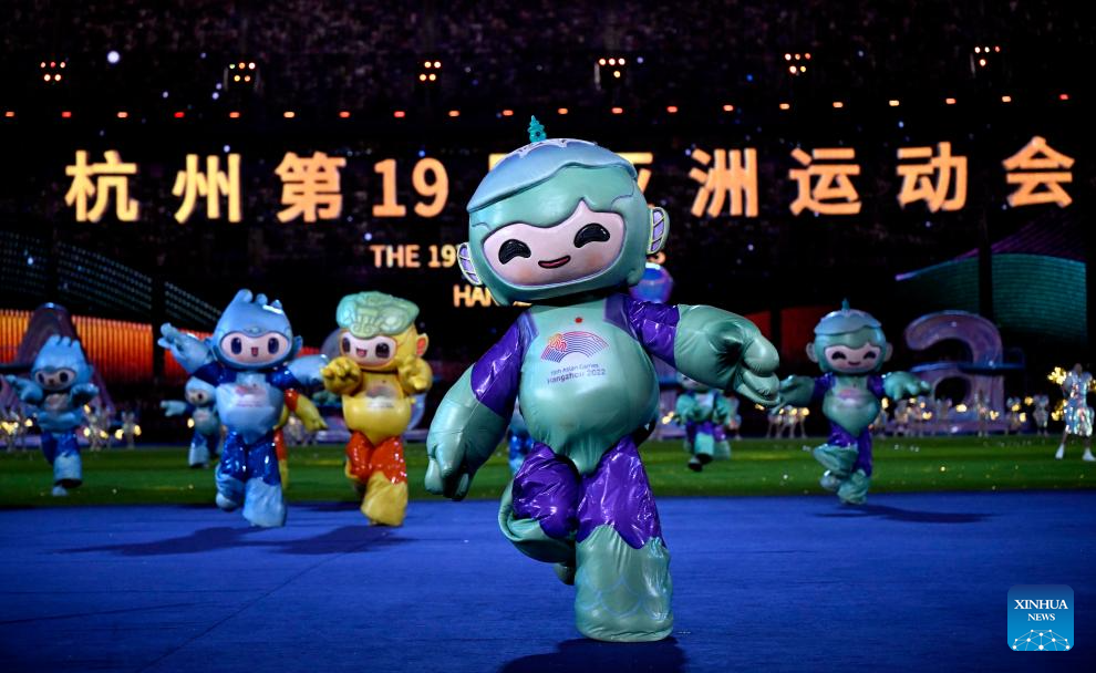 Artists perform during the closing ceremony of the 19th Asian Games at the Hangzhou Olympic Sports Center Stadium in Hangzhou, east China's Zhejiang Province, Oct. 8, 2023. (Xinhua/Xue Yuge)