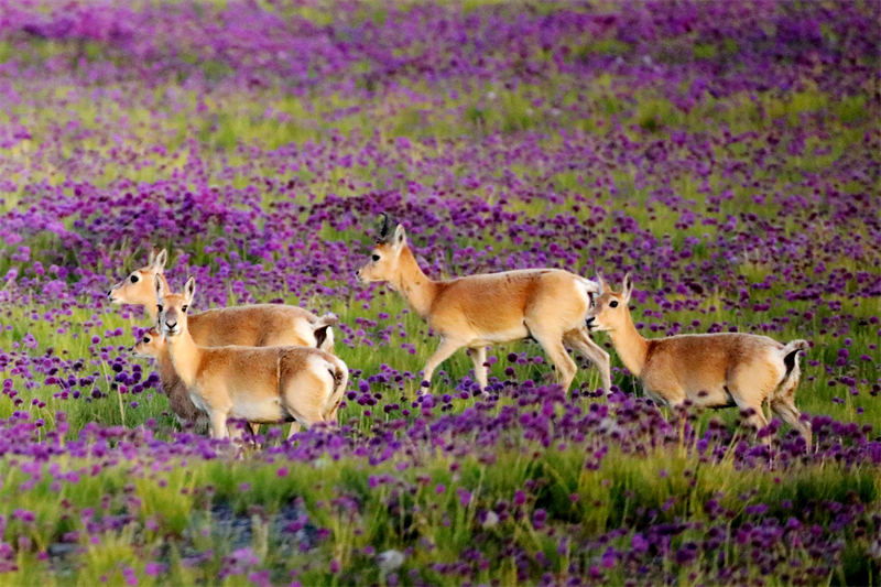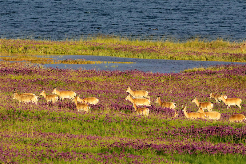 Photo shows Przewalski's gazelles, an endangered species, in northwest China's Qinghai Province. (Photo courtesy of the administration bureau of the Qinghai Lake National Nature Reserve)