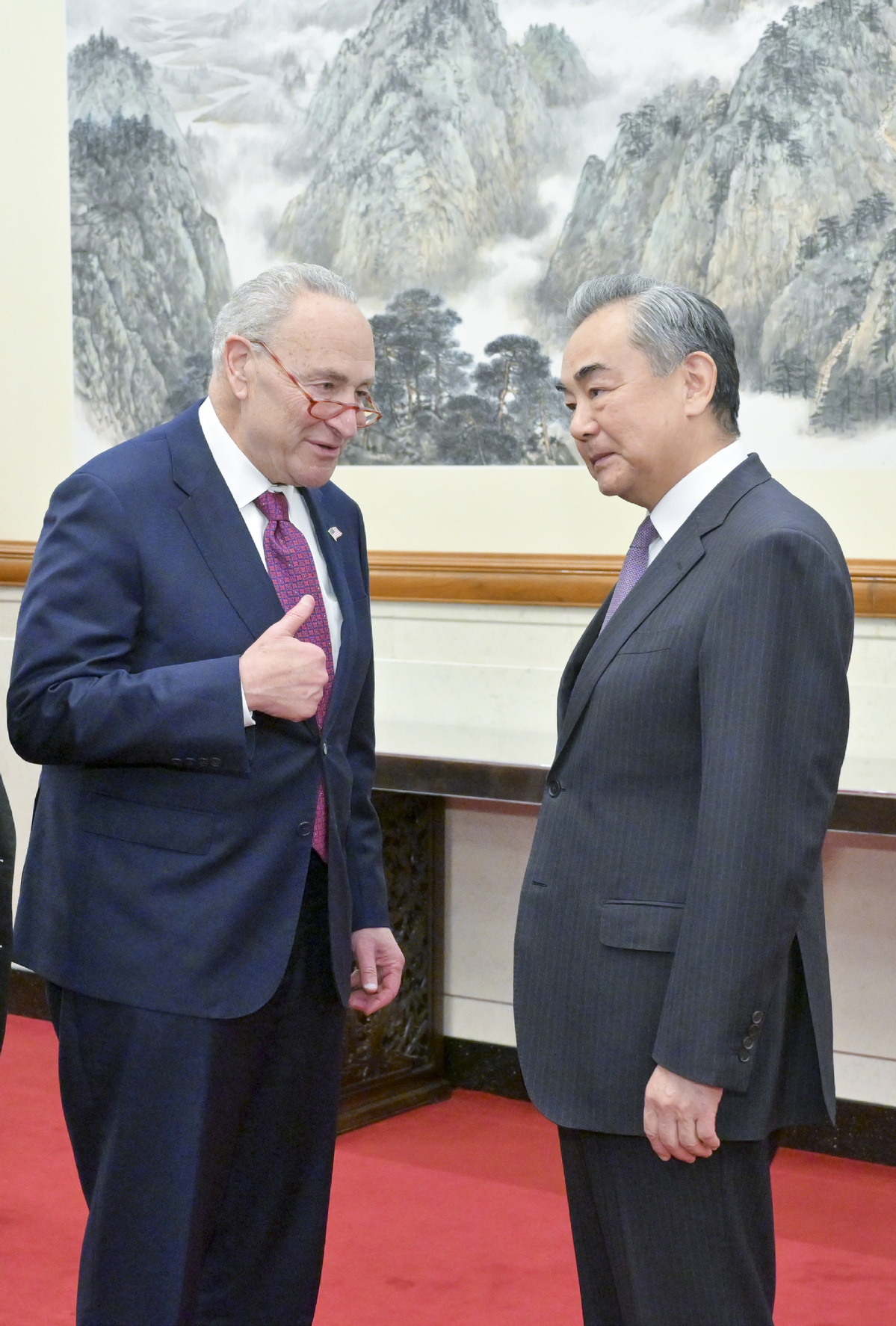 Wang made the remarks when meeting with a bipartisan delegation from the US Senate led by Senate Majority Leader Chuck Schumer in Beijing on Monday.