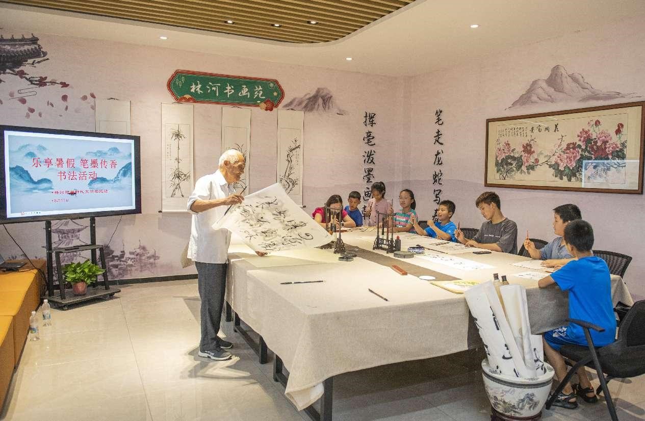Villagers learn Chinese calligraphy in Linhe village, Guanmiao township, Suqian, east China's Jiangsu province. (People's Daily Online/Xu Jianghai)