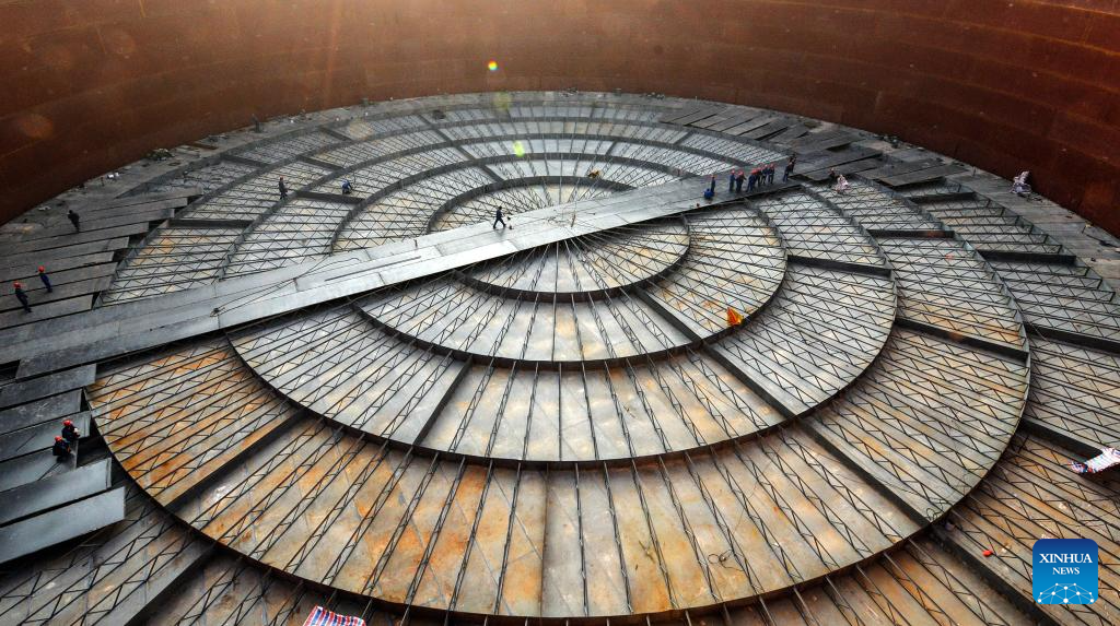 This photo taken on Oct. 27, 2009 shows a storage tank under construction at the Qinzhou Port in Qinzhou, south China's Guangxi Zhuang Autonomous Region. (Xinhua/Zhang Ailin)