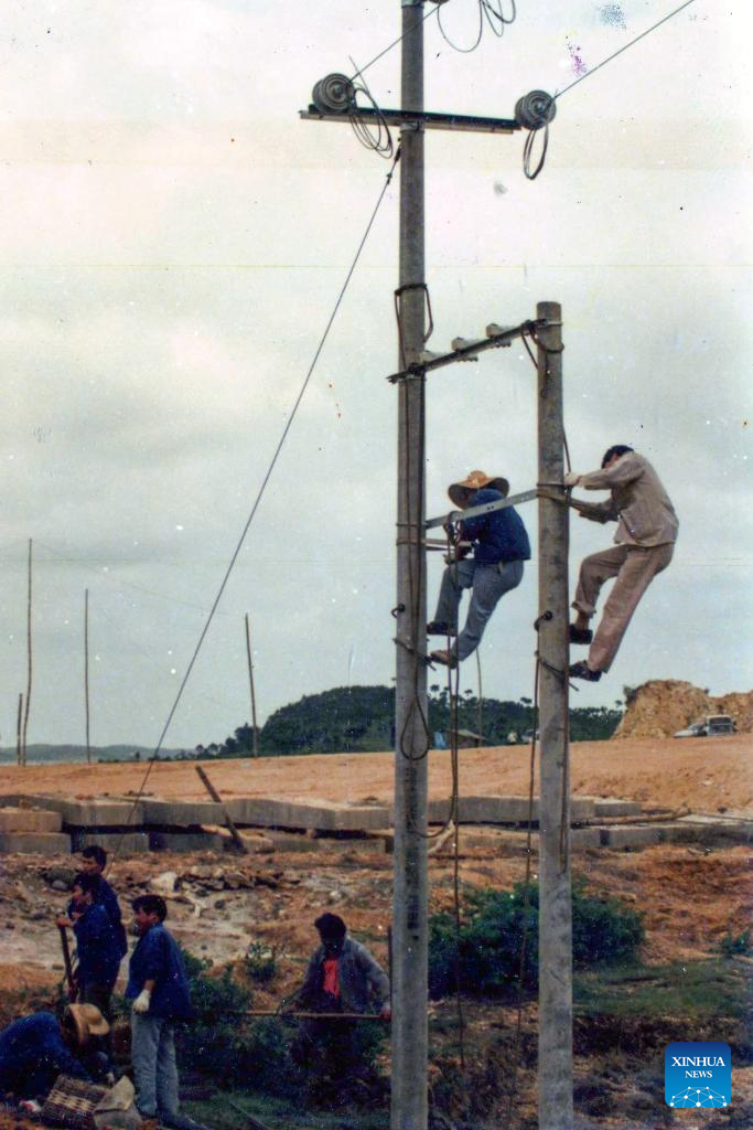 This file photo taken on May 18, 1992 shows the first electricity pole at the Qinzhou Port in Qinzhou, south China's Guangxi Zhuang Autonomous Region. (Xinhua)