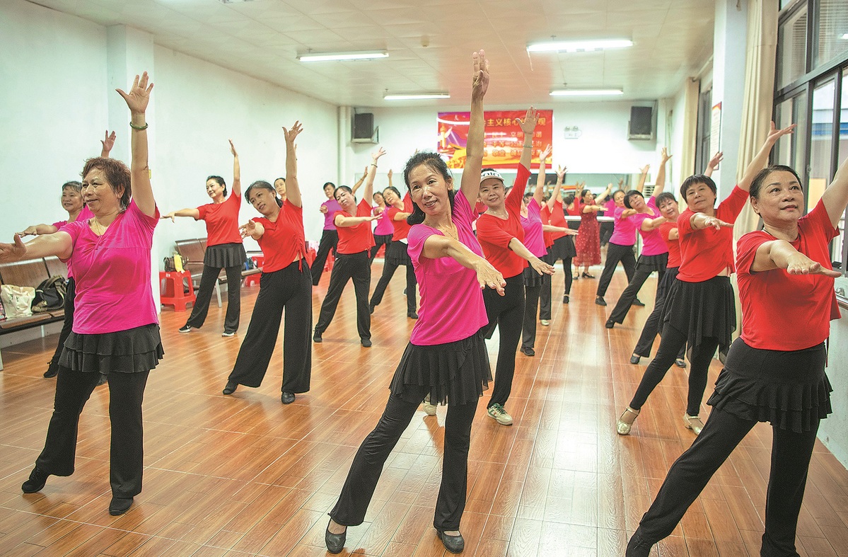 Seniors participate in a fitness course at the University for the Elderly in Qionghai, Hainan province, on Oct 7, 2023. Dubbed a university, the institute, which is beginning its fifth school year, welcomes people over 50 to take part in various classes to improve their life quality, especially for those who have recently retired. [Photo by Meng Zhongde/For chinadaily.com.cn]