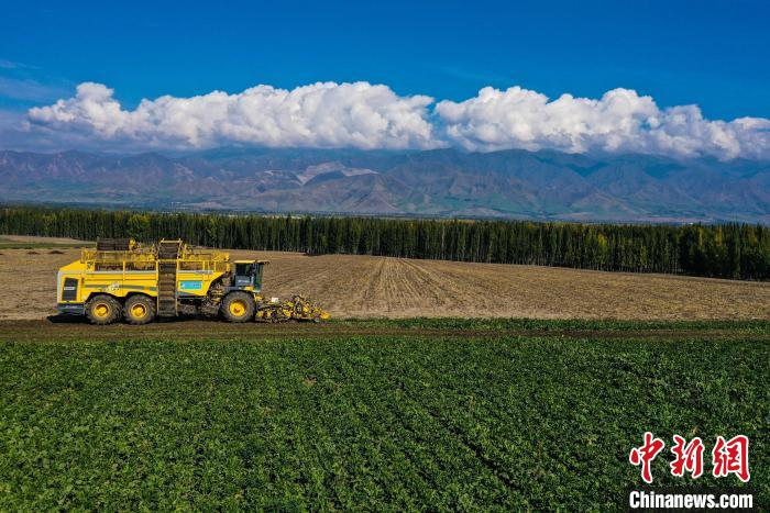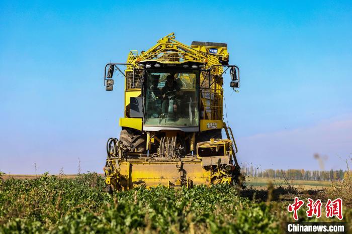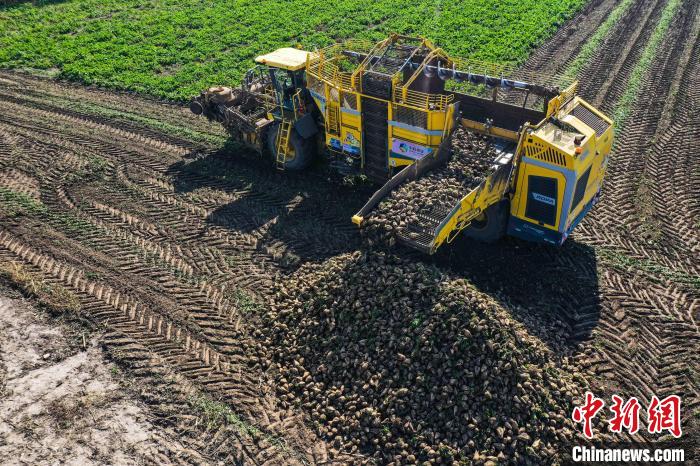 The production of sugar beets in Xinyuan county has been fully mechanized. Each of the automated machines can harvest 150 mu (10 hectares) to 200 mu of sugar beets per day, 100 times to over 150 times more efficient than manual labor. Sugar beet growers can simply sit back and watch machines complete the autumn harvest.