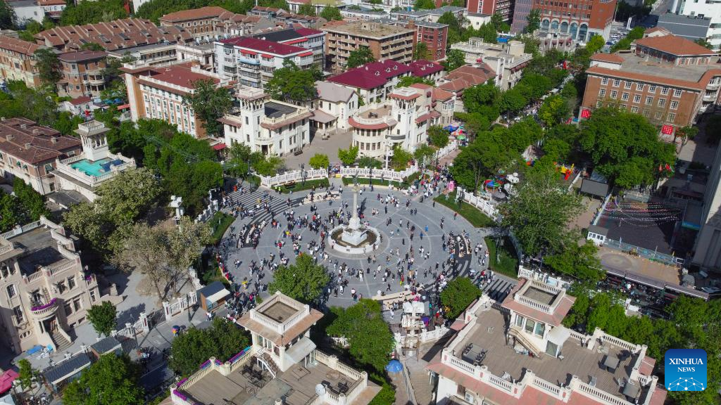 This aerial photo take on May 1, 2021 shows a view of the Italian Style Area in Hebei District of north China's Tianjin.