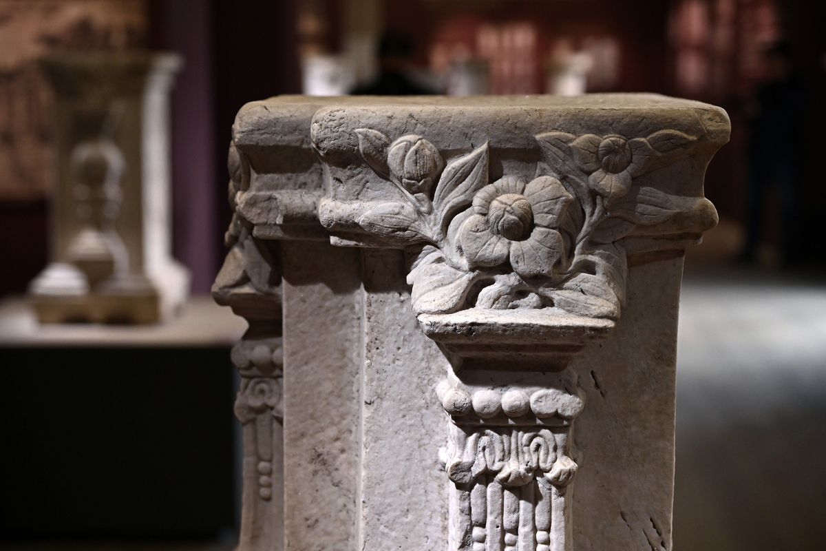 Marble columns from Yuanmingyuan, or the Old Summer Palace, is on display at Zhengjue Temple of Yuanmingyuan Ruins Park in Beijing on Friday. An exhibition displaying all seven marble columns repatriated from Norway opened to the public on Friday. [Photo/Xinhua]
