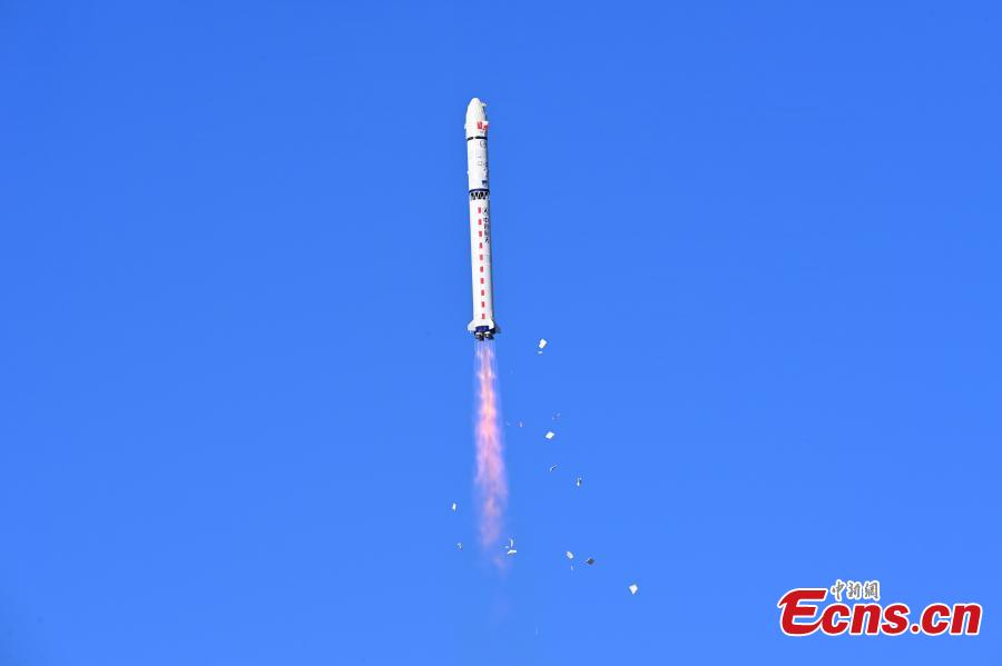 A Long March-2D carrier rocket carrying the Coded Yunhai-1 04 satellite blasts off from the Jiuquan Satellite Launch Center in northwest China, Oct. 15, 2023. (Photo: China News Service/Wang Jiangbo)
