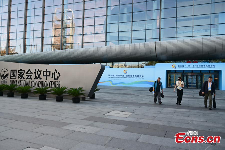 An exterior view of the Media Center for the third Belt and Road Forum for International Cooperation in Beijing, Oct. 15, 2023. (Photo: China News Service/Tian Yuhao)