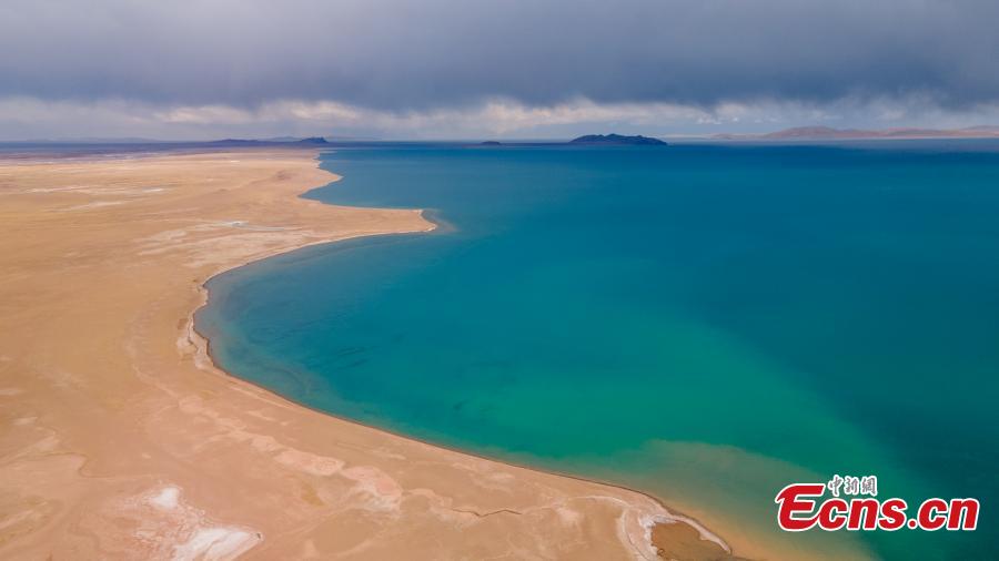 Aerial view of Serling Tso Lake in southwest China's Tibet Autonomous Region. It is the largest lake in Tibet and the second-biggest saltwater lake in China, with an altitude of 4,530 meters. (Photo: China News Service/Jiang Feibo)