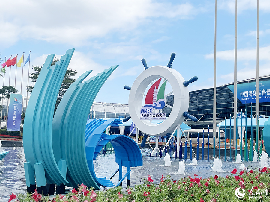 Photo shows an exterior view of the venue of the World Marine Equipment Conference 2023 and the China Marine Equipment Expo 2023, which were held simultaneously in Fuzhou, southeast China's Fujian Province. (People's Daily Online/Lin Ying)