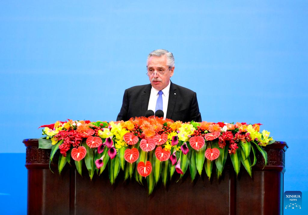 Addressing the opening ceremony of the third Belt and Road Forum for International Cooperation, Fernandez said Argentina supports Chinese President Xi Jinping's proposals of the Global Development Initiative, Global Security Initiative, and Global Civilization Initiative.
