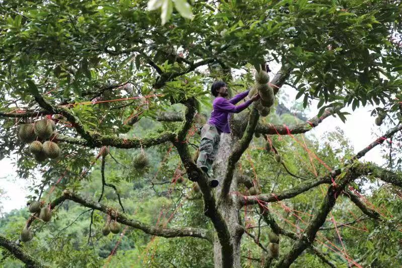 Chaiwat's orchard is located in a mountain pass. "I contracted the orchard to Chinese merchants, who give stable purchasing prices and timely payment. I don't need to worry about sales," said Chaiwat, adding that they are happy to see the popularity of Thai durians in China.