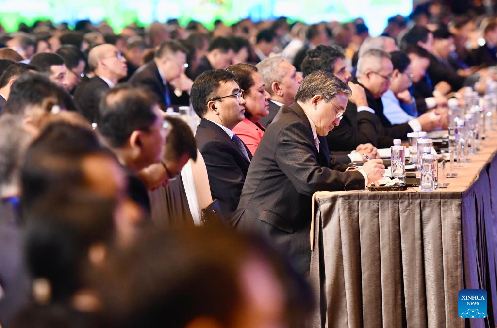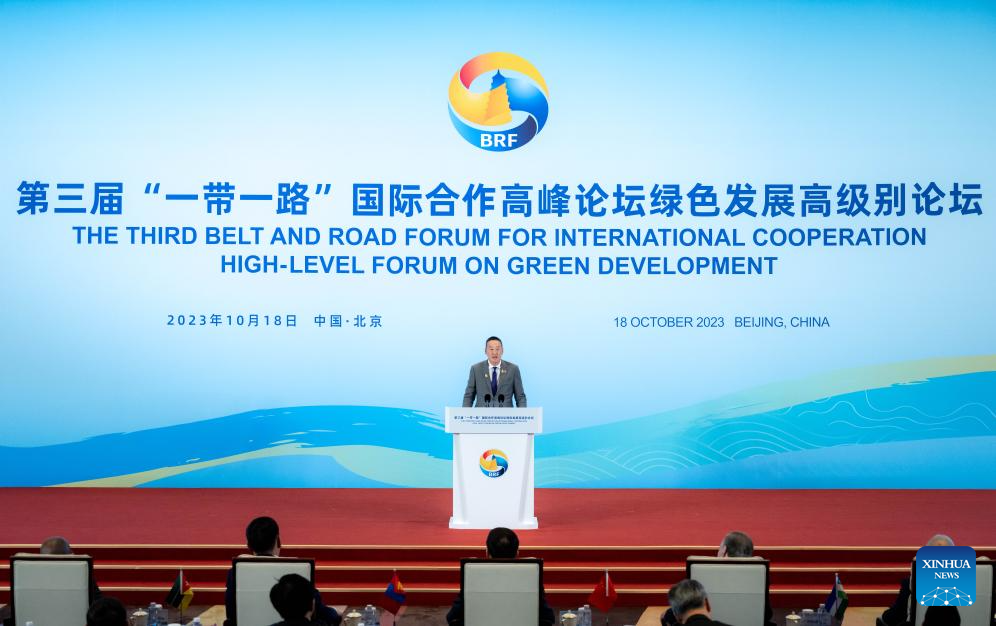 Guests attend the High-Level Forum on Green Development of the third Belt and Road Forum for International Cooperation in Beijing, capital of China, on Oct. 18, 2023. High-level forums on connectivity, green development and digital economy of the third Belt and Road Forum for International Cooperation were held in Beijing on Wednesday. (Xinhua/Li Xin)