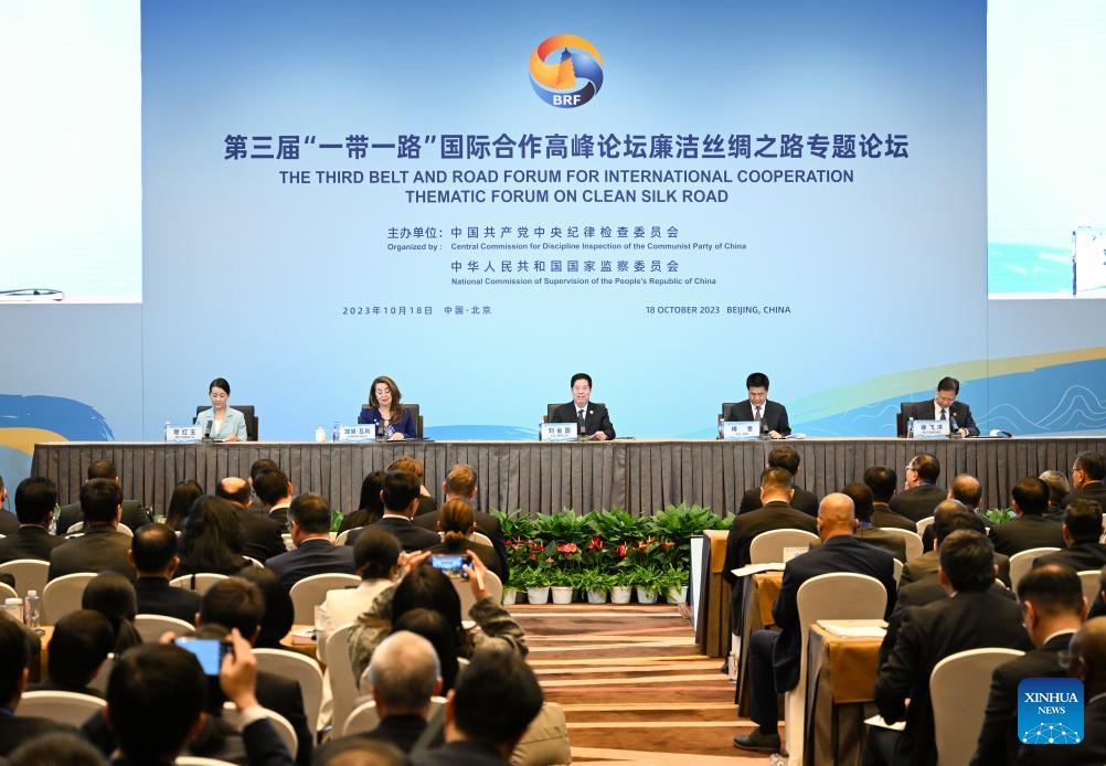 BEIJING, Oct. 18 (Xinhua) -- The thematic forum on the clean Silk Road of the third Belt and Road Forum for International Cooperation was held Wednesday in Beijing.