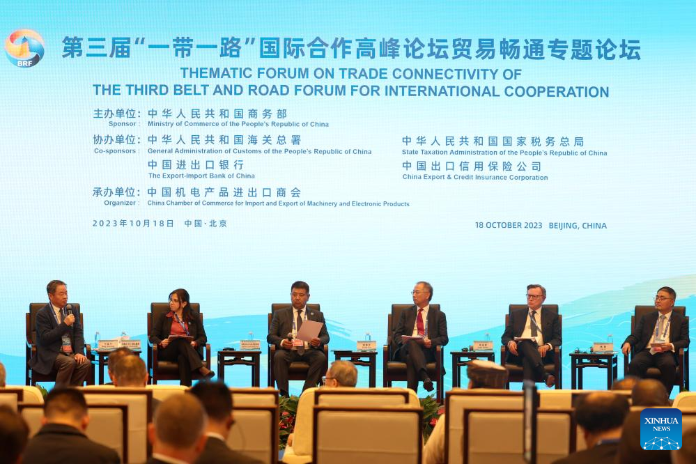The Thematic Forum on Trade Connectivity of the third Belt and Road Forum for International Cooperation is held in Beijing, capital of China, Oct. 18, 2023. (Xinhua/Chen Bin)