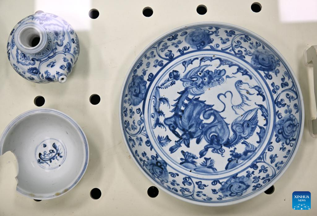 This photo taken on Oct. 10, 2023 shows cultural relics unearthed from ancient shipwrecks discovered in the South China Sea. (Xinhua/Guo Cheng)