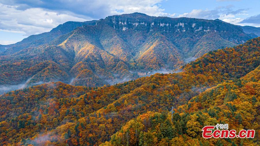 Intoxicating landscape at Shennongjia National Park as fall colors travel down the mountainsides from the highest elevations to the foothills in central China's Hubei Province. (Photo: China News Service/Li Kaiyu)