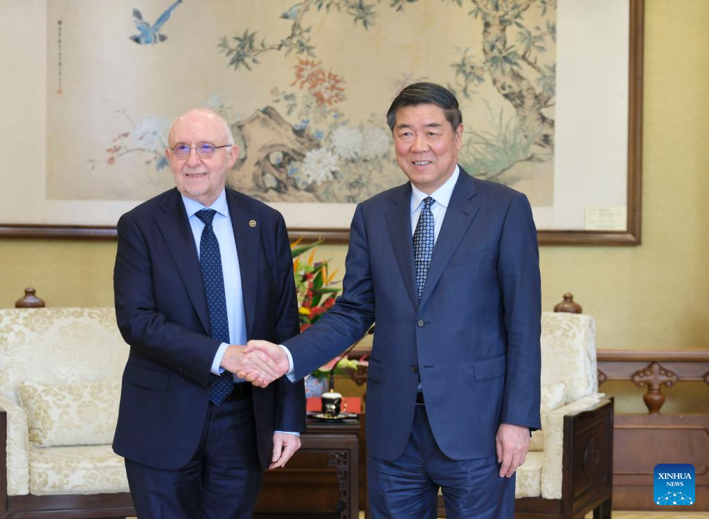 Chinese Vice Premier He Lifeng, also a member of the Political Bureau of the Communist Party of China Central Committee, meets with President of the International Civil Aviation Organization (ICAO) Council Salvatore Sciacchitano, who attended the third Belt and Road Forum for International Cooperation, in Beijing, capital of China, Oct. 19, 2023. (Xinhua/Ding Lin)